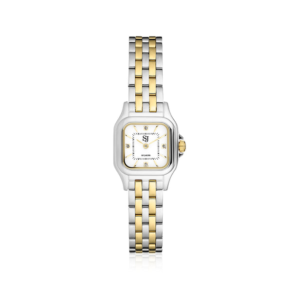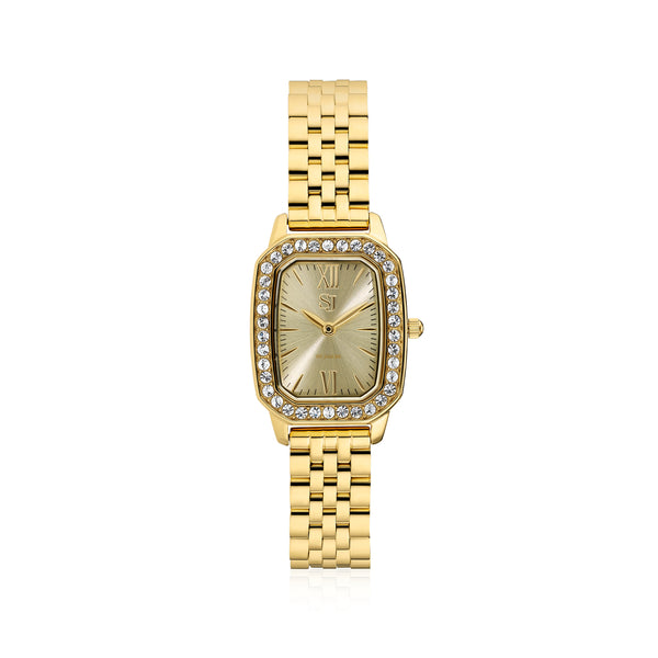 • Stainless steel gold | Guld urskive & hvide zirkoner