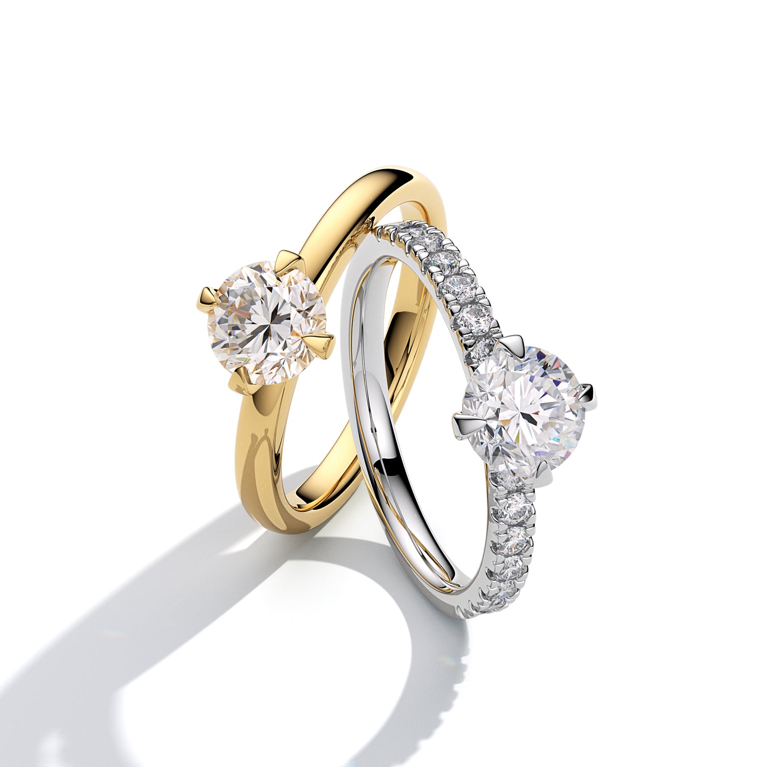 Hver style er håndsat med brillantslebne og marquiseslebne diamanter. Med lab-grown diamanter har du mulighed for at opgradere til større, funklende sten til en pris hvor de fleste kan være med.