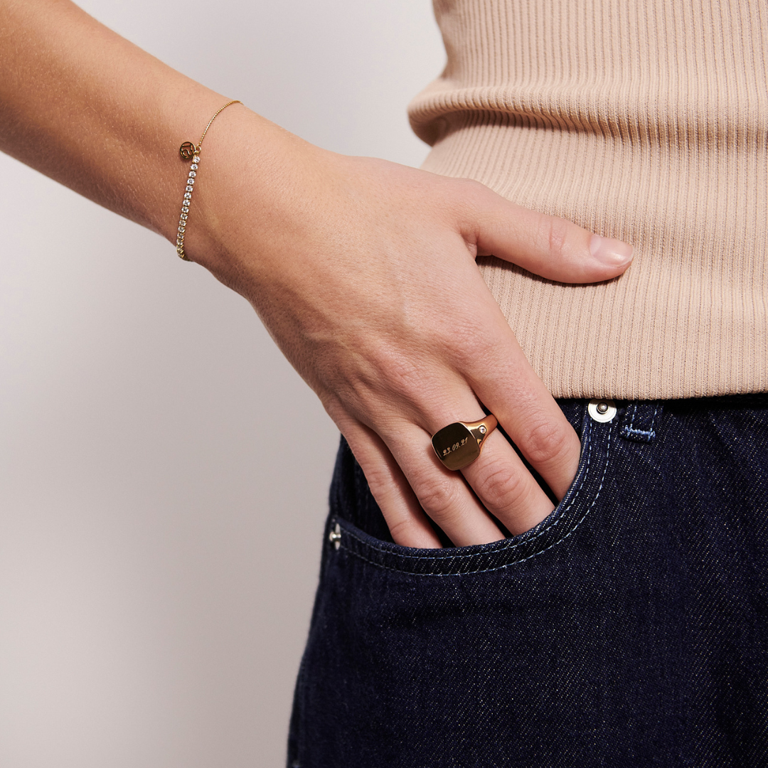 Der er noget særligt ved en ring med indgravering. Den kan bæres skjult på indersiden eller fremhæves på ydersiden som et statement. Vælg en bred ring til markante citater, eller en tyndere og mere diskret ring. Ringe med indgravering er et tidløst personligt smykke, du aldrig tager af.