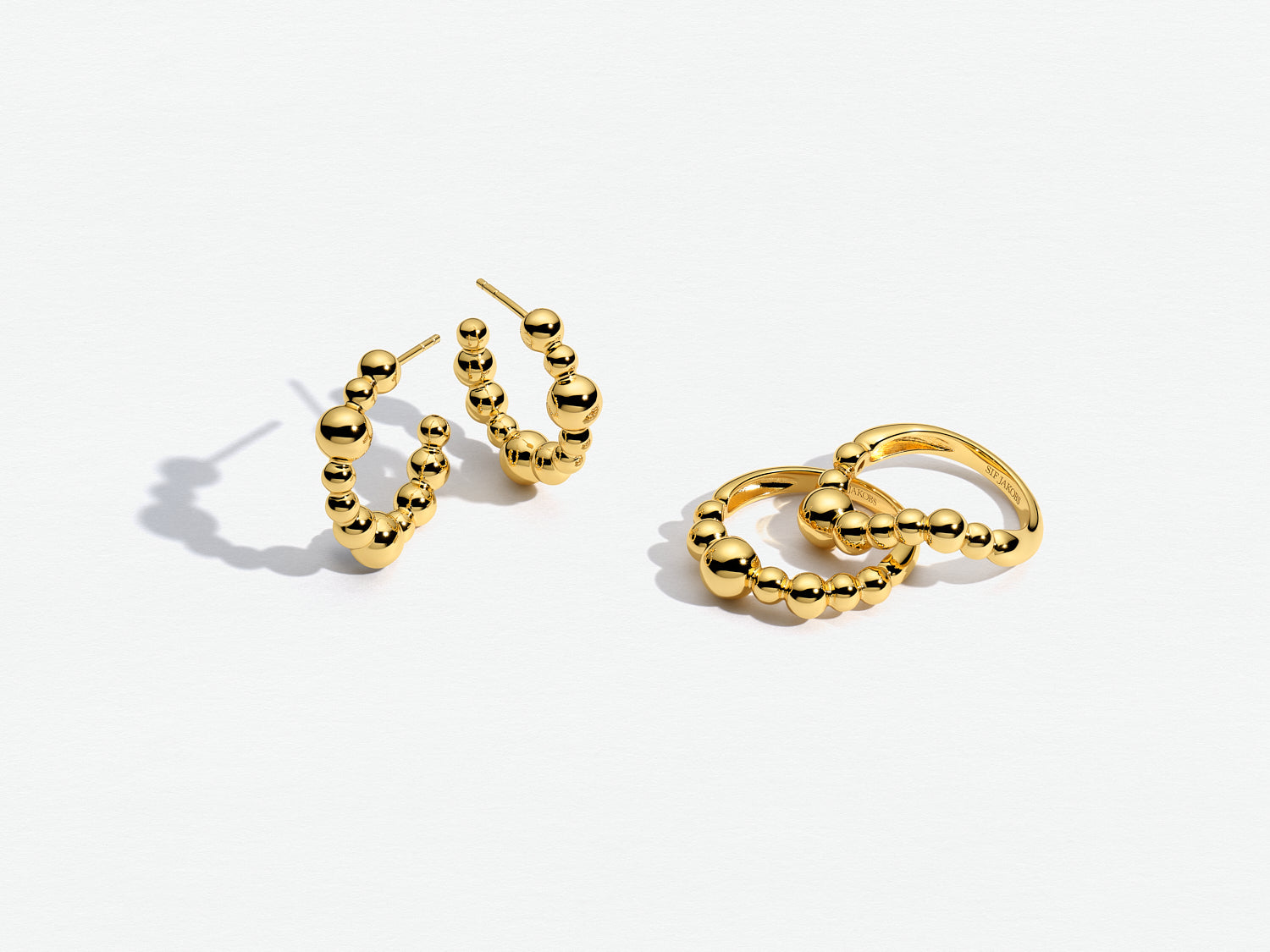 SHOP NOWBormio vender tilbage til SS26 med nye ringe og en mindre version af de populære Bormio hoops, hvor den klassiske kugleform genfortolkes med et friskt, moderne twist.