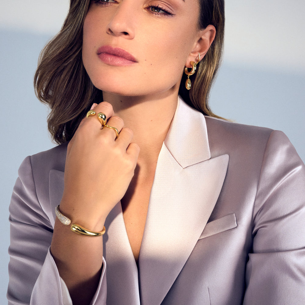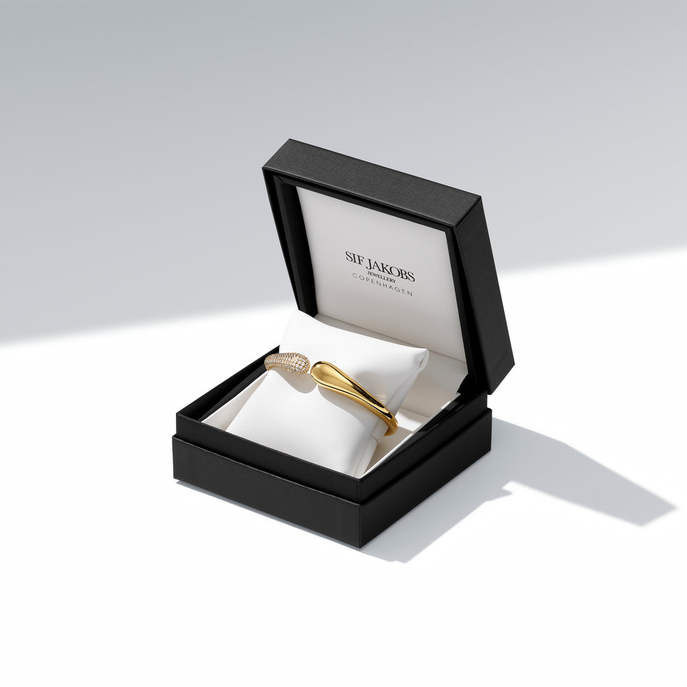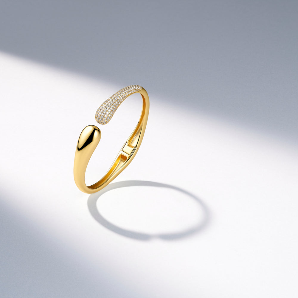 Bangle af 18 karat forgyldt 925 sterling sølv, med poleret overflade og håndsat med facet-slebne hvide zirkoner
