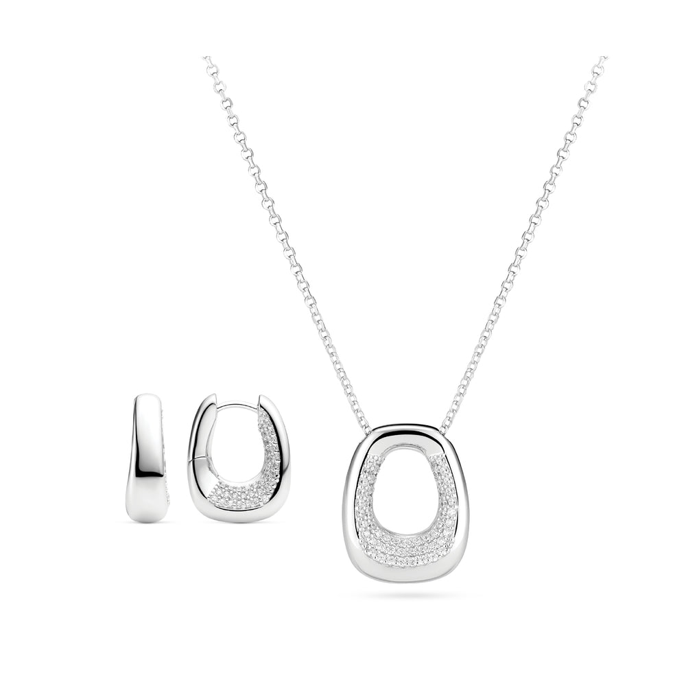 Sæt af rhodineret 925 Sterling Sølv, med en poleret overflade og håndsatte facetslebne hvide zirkonia.