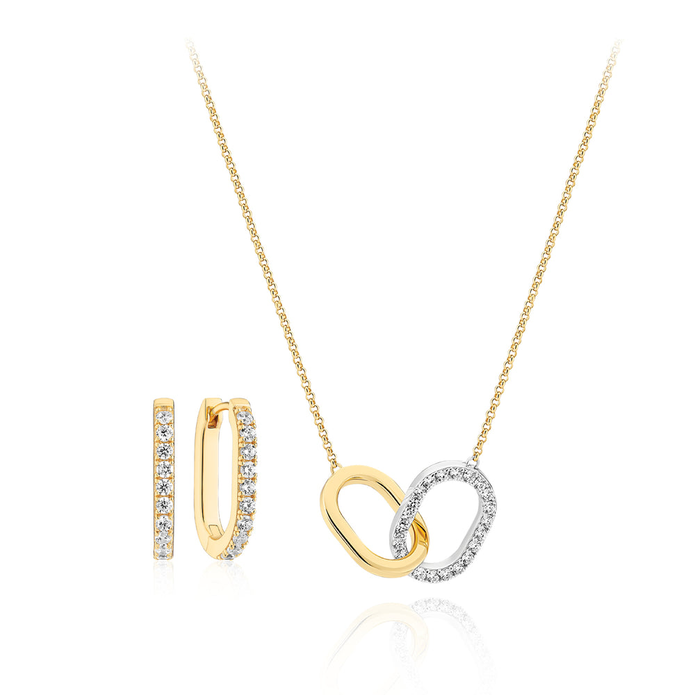 Sæt af 18 karat forgyldt 925 Sterling Sølv, med en poleret overflade og håndsatte facetslebne hvide zirkonia.