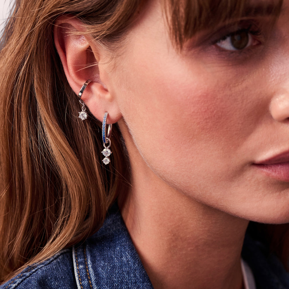 Charm til enhver kompatibel hoop lavet af rhodineret 925 Sterling sølv, med poleret overflade og håndsatte facet-slebne hvide zirkonia. Vi tilbyder også en charm-lås med ankerkæde eller alene. Denne lås er designet til at passe til enhver kompatibel kæde, halskæde eller armbånd, så du kan tilføje en charm efter eget valg. Klik eller skub den blot på for nemt at tilføje eller bytte charms. Det er perfekt til at mixe og matche, så du kan personliggøre dine smykker og skabe et look, der er unikt for dig.