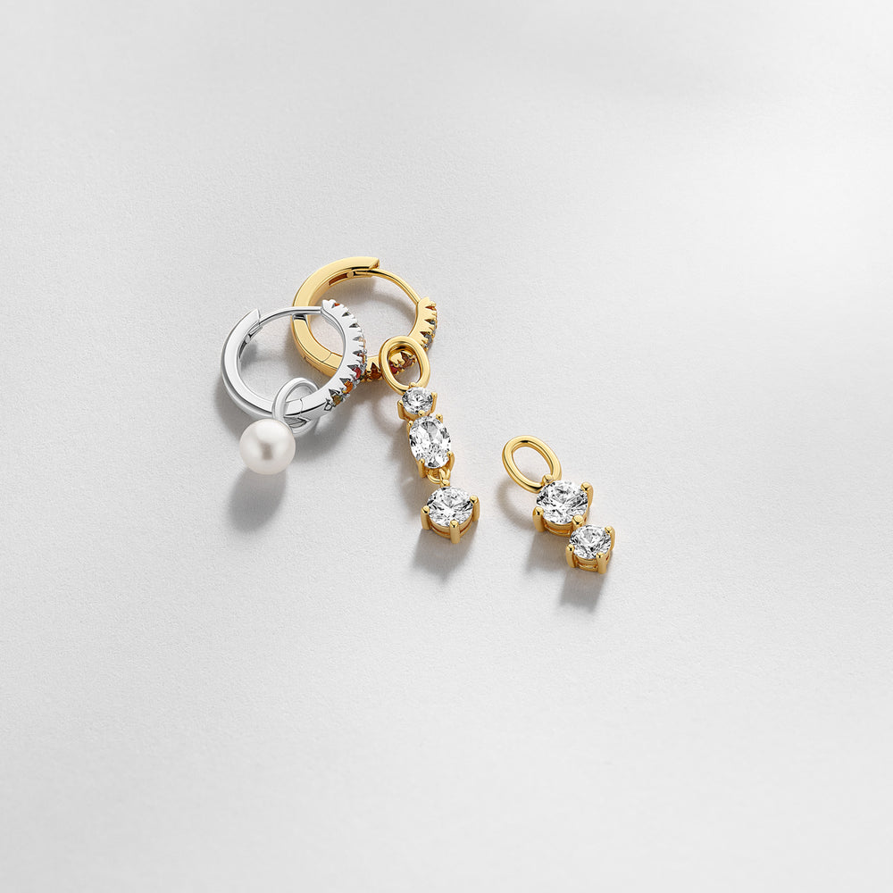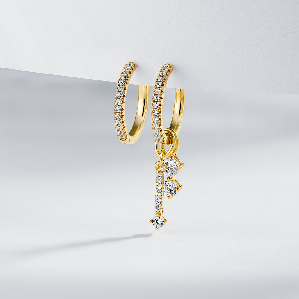 Charm til enhver kompatibel hoop lavet af 18 karat guld belagt 925 Sterling sølv, med poleret overflade og håndsatte facet-slebne hvide zirkonia. Vi tilbyder også en charm-lås med ankerkæde eller alene. Denne lås er designet til at passe til enhver kompatibel kæde, halskæde eller armbånd, så du kan tilføje en charm efter eget valg. Klik eller skub den blot på for nemt at tilføje eller bytte charms. Det er perfekt til at mixe og matche, så du kan personliggøre dine smykker og skabe et look, der er unikt for dig.