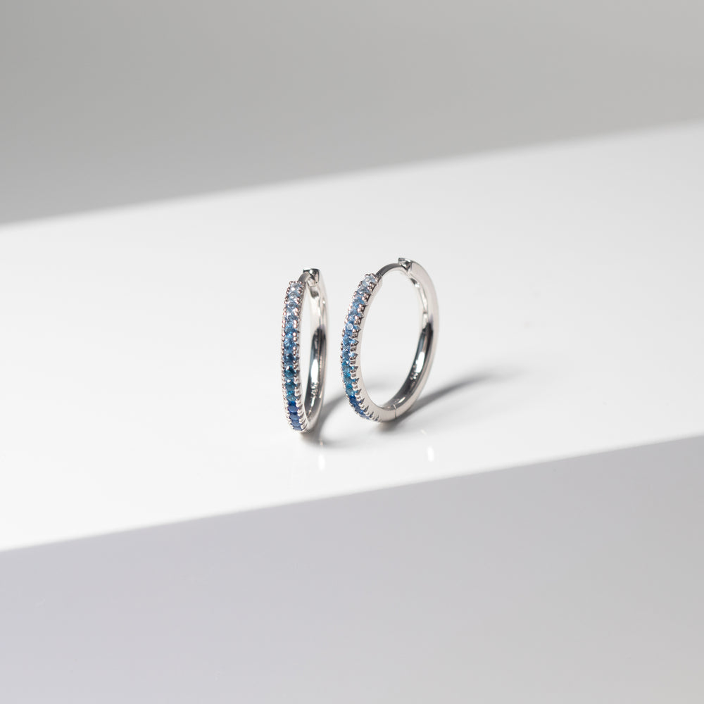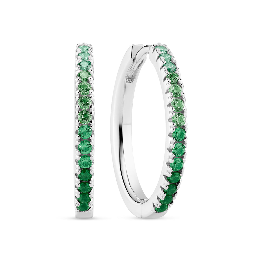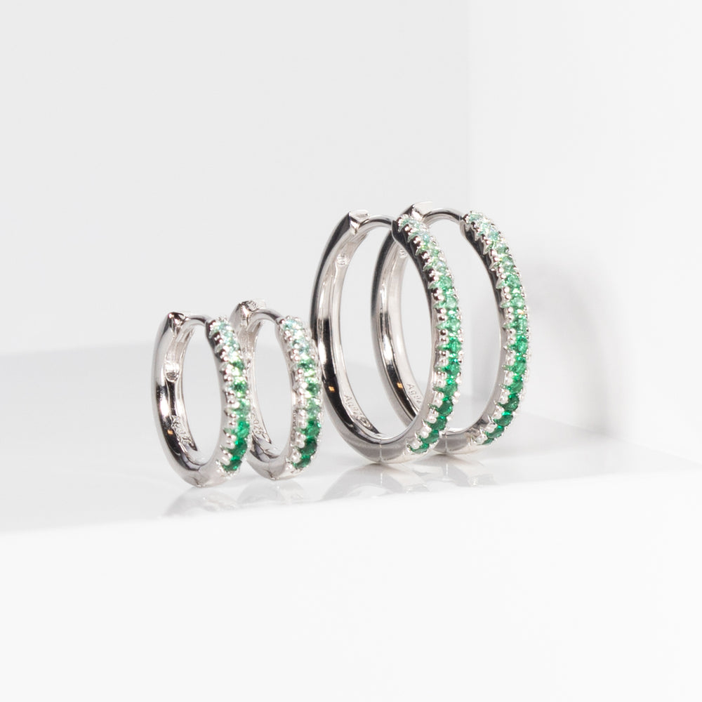 Øreringe lavet af 925 sterlingsølv med rhodium, poleret overflade og indfattet med facetterede zirkoner i gradienttoner af grøn og hvid.