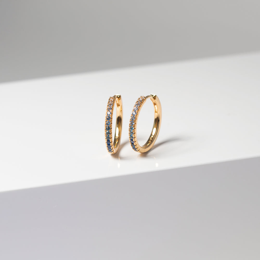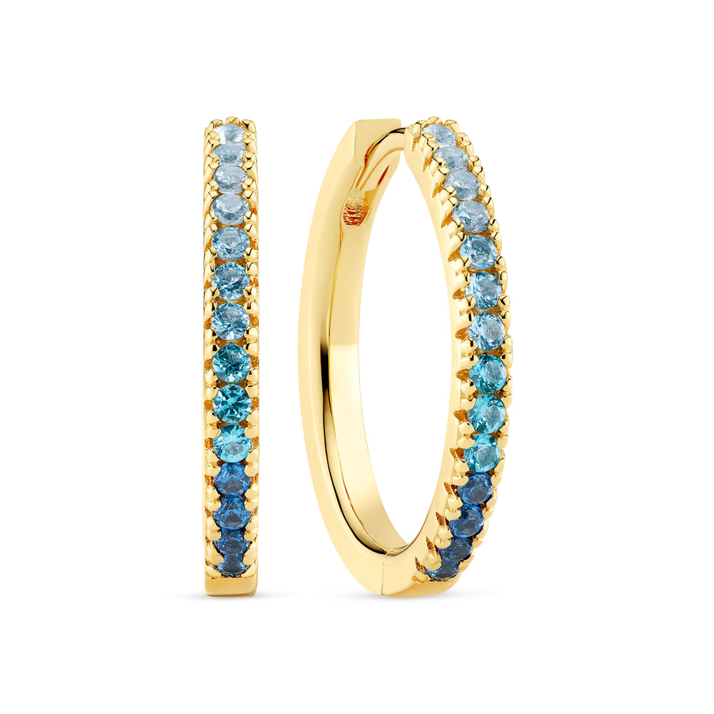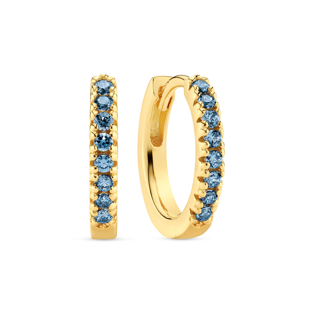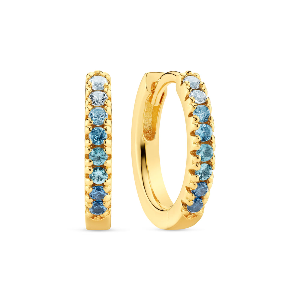 Øreringe i sterlingsølv 925 forgyldt med 18 karat guld med blankpoleret overflade og facetslebne blå zirkoner.