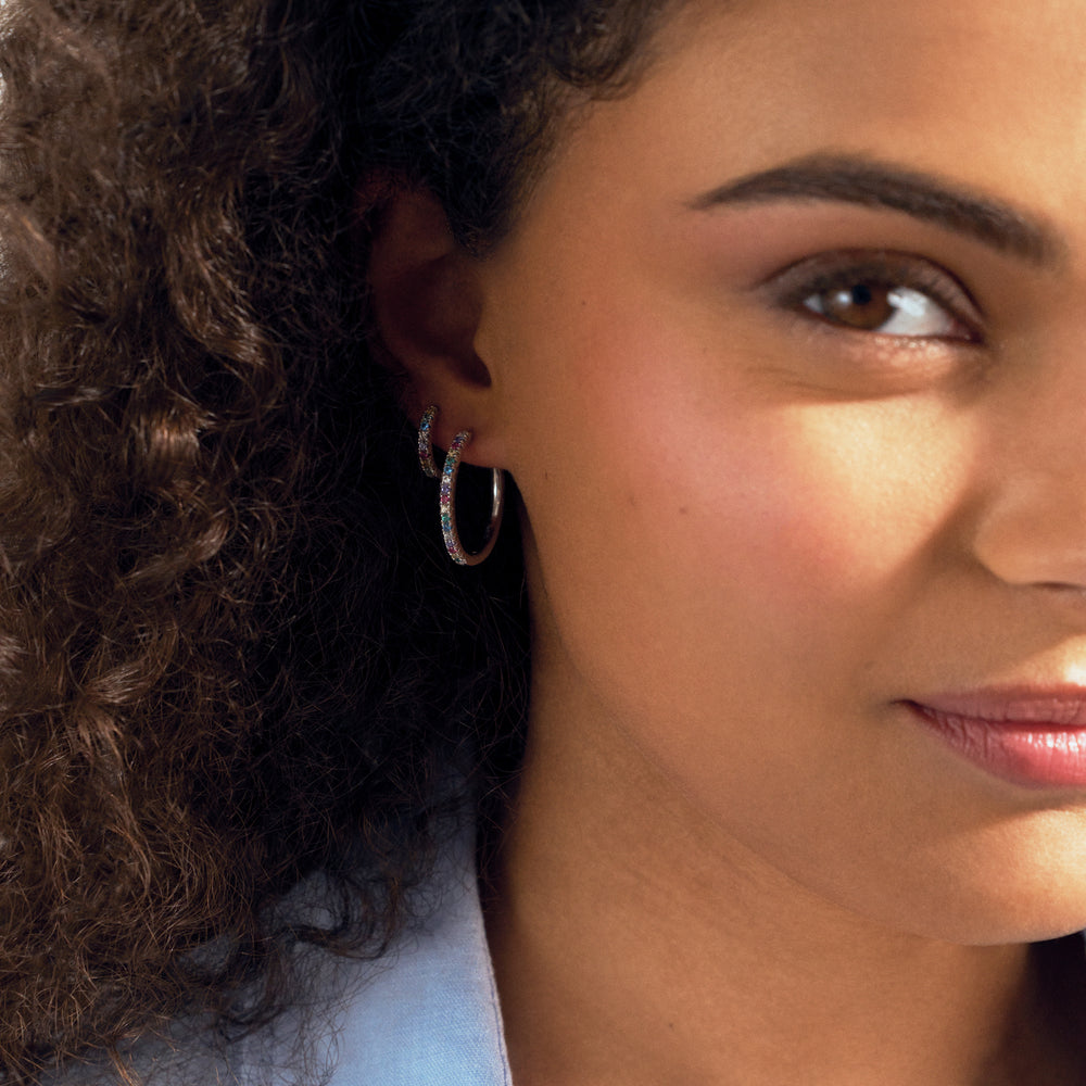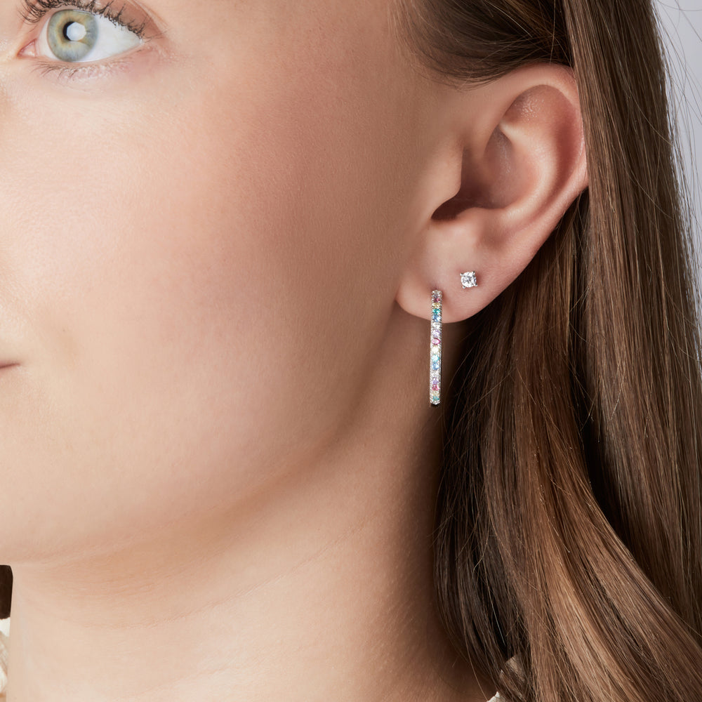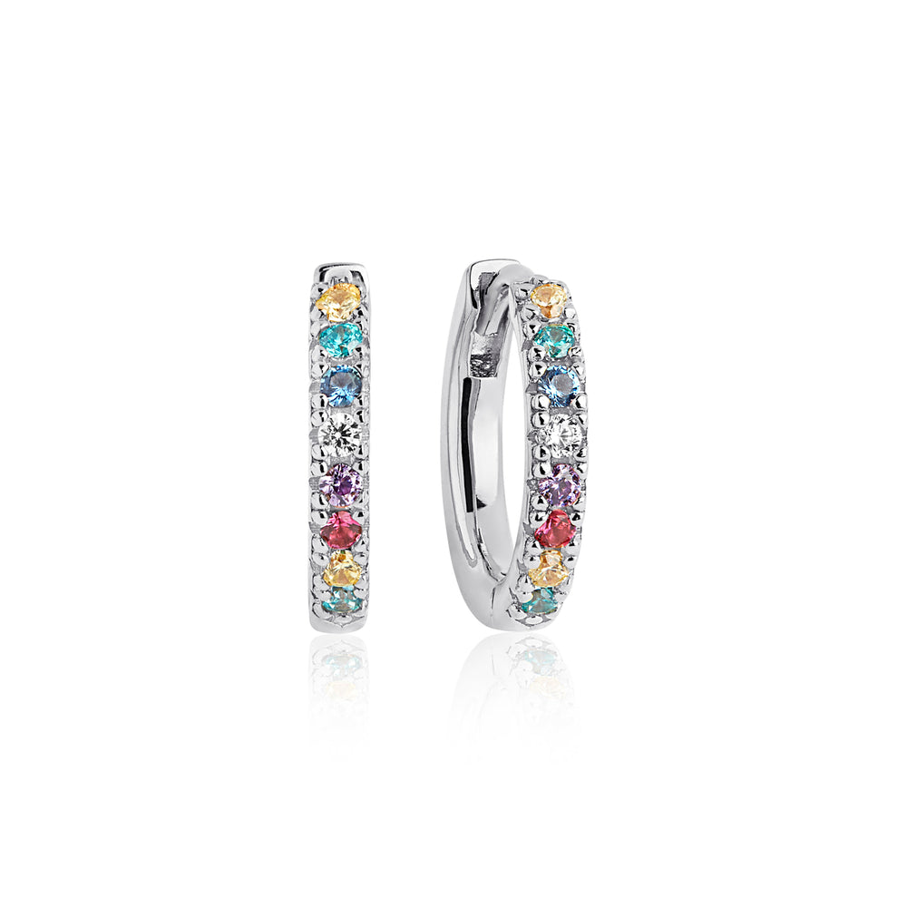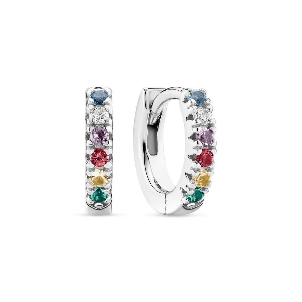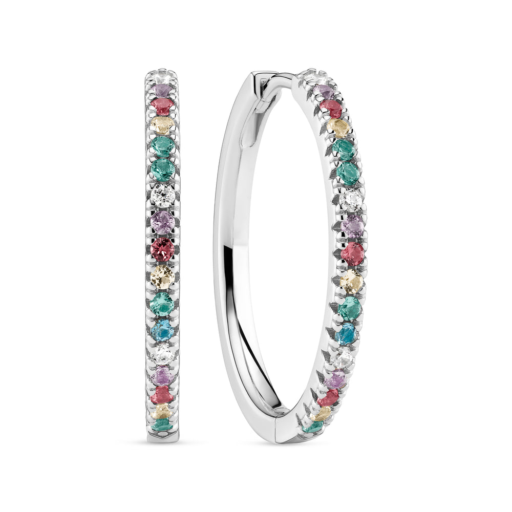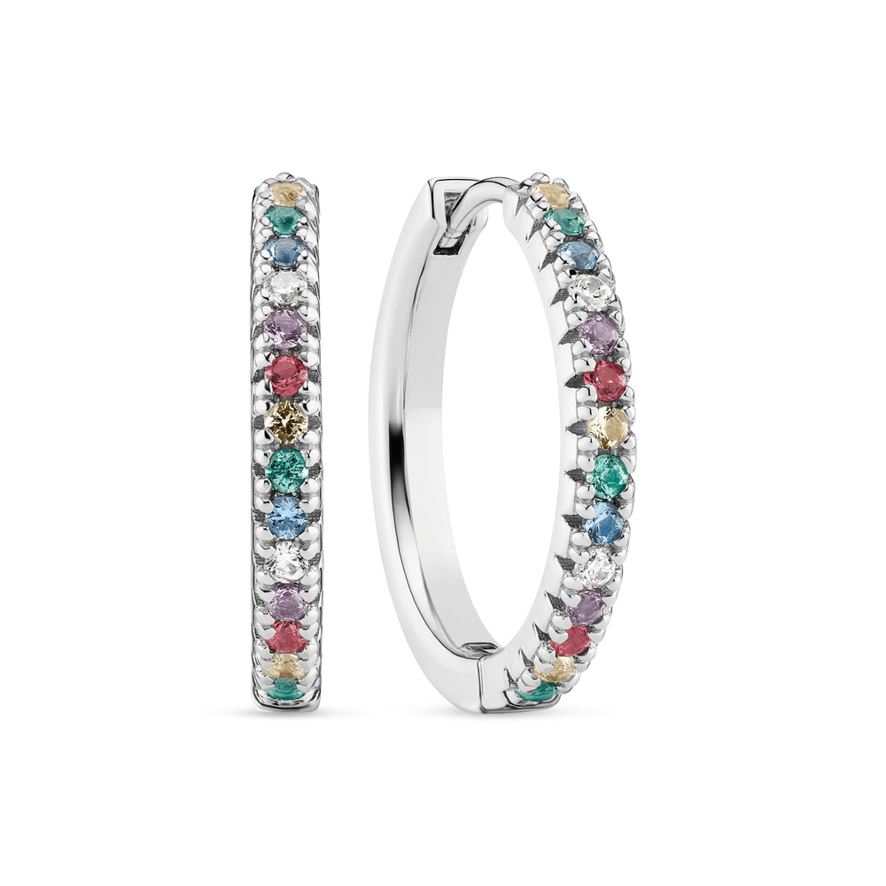 Øreringe i rhodineret sterlingsølv 925 med blankpoleret overflade og facetslebne multifarvede zirkoner.