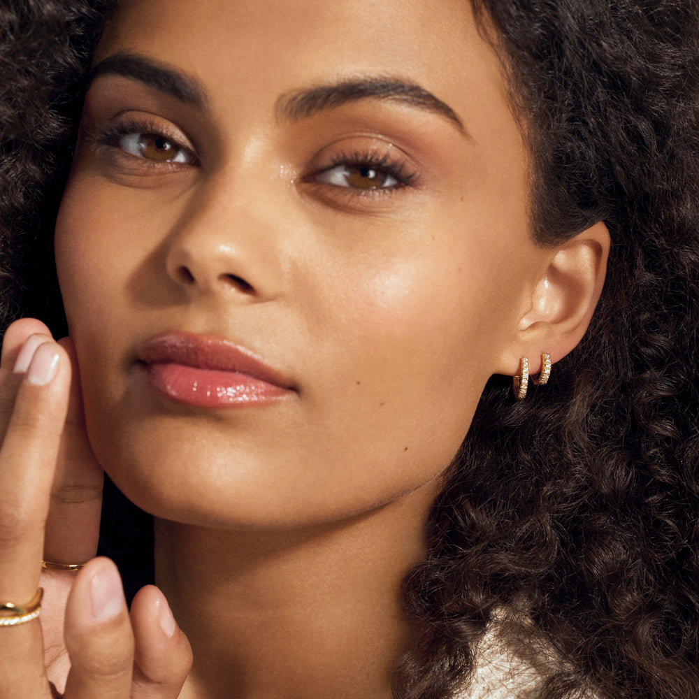 Øreringe lavet af 18 karat forgyldt 925 sterlingsølv med poleret overflade og indfattet med facetslebne zirkoner i gradienttoner af pink og hvid.