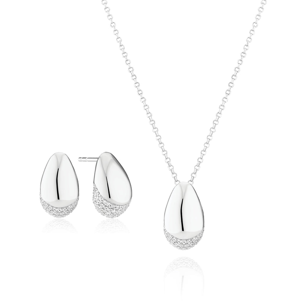 Sæt af rhodineret 925 Sterling Sølv, med en poleret overflade og håndsatte facetslebne hvide zirkonia.