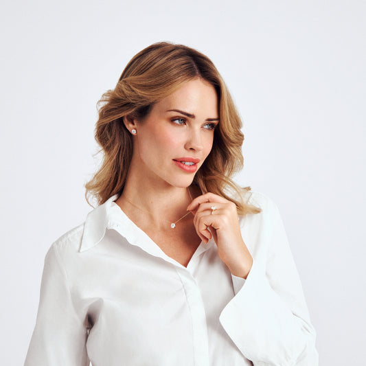 Alle vores smykke er lavet af 925 sterlingsølv, belagt med rhodium eller 18 karat guld for at opnå en elegant finish.
