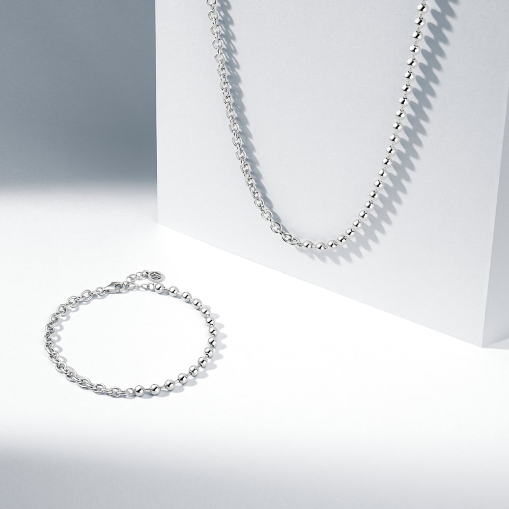 Alle vores smykke er lavet af 925 sterlingsølv, belagt med rhodium eller 18 karat guld for at opnå en elegant finish.
