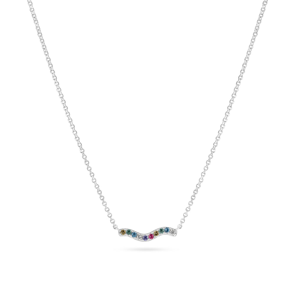 Halskæde af rhodineret 925 sterling sølv, poleret overflade og håndsat med facetterede multifarvede zirkoner