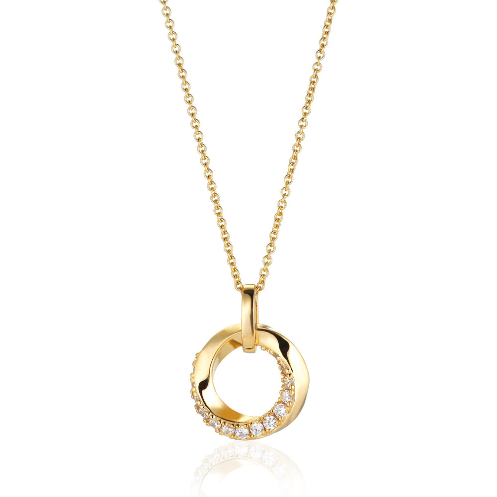 Halskæde i sterlingsølv 925, forgyldt med 18 karat guld, med blankpoleret overflade og facetslebne hvide zirkoner.