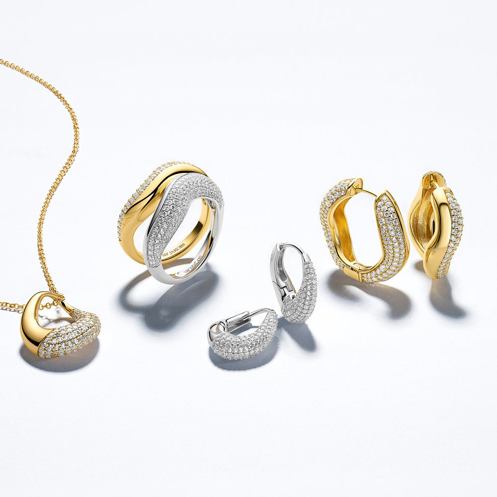 Alle vores smykke er lavet af 925 sterlingsølv, belagt med rhodium eller 18 karat guld for at opnå en elegant finish.