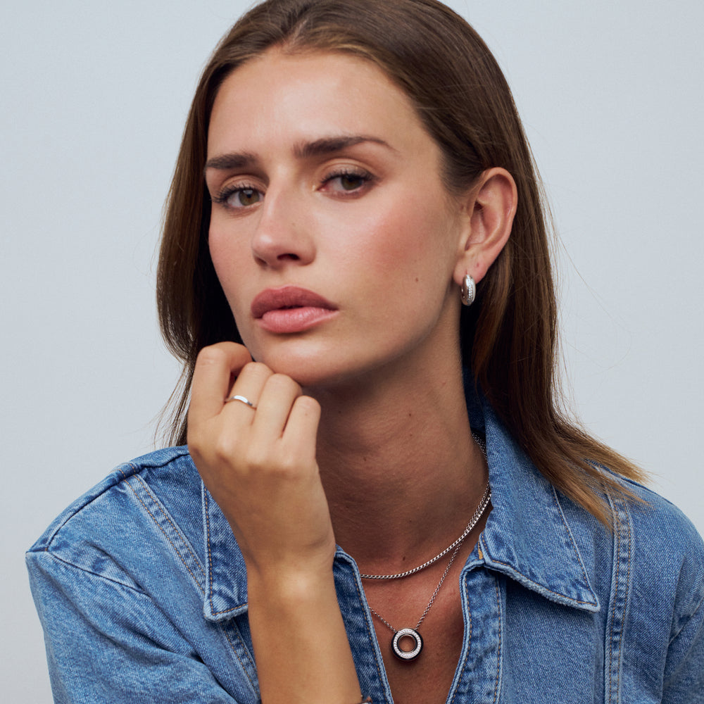 Alle vores smykke er lavet af 925 sterlingsølv, belagt med rhodium eller 18 karat guld for at opnå en elegant finish.