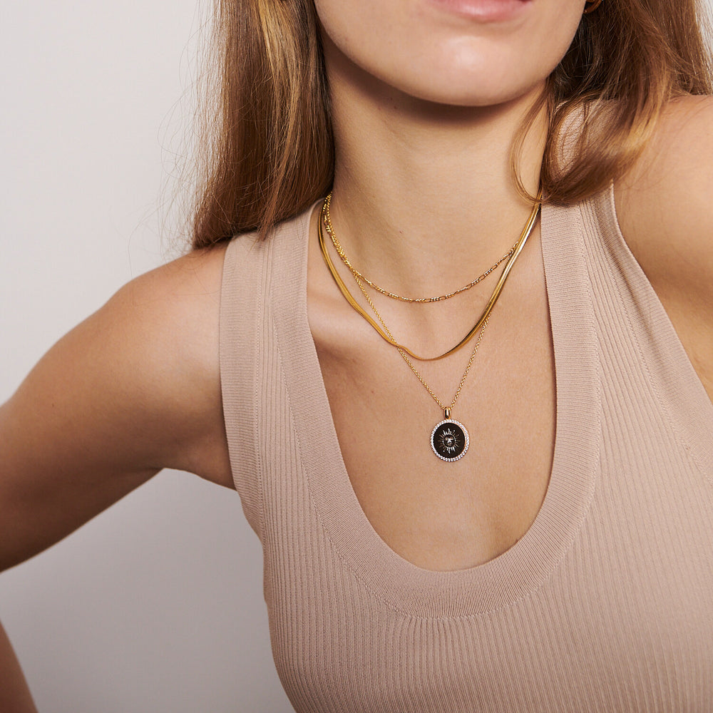 Alle vores smykke er lavet af 925 sterlingsølv, belagt med rhodium eller 18 karat guld for at opnå en elegant finish.