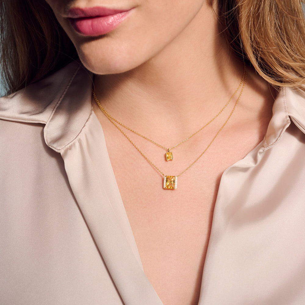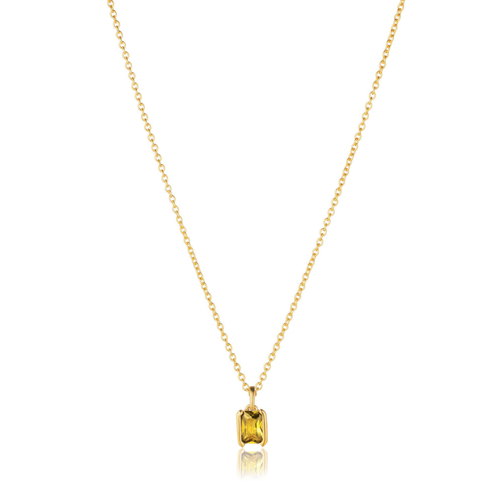 Halskæde i 18 kt. forgyldt 925 sterlingsølv med blankpoleret overflade, håndsat med gule smaragdslebne zirkoner.