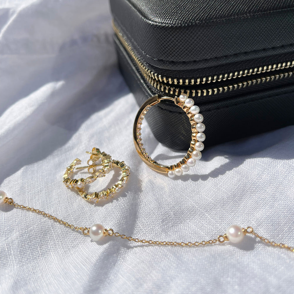 Alle vores smykke er lavet af 925 sterlingsølv, belagt med rhodium eller 18 karat guld for at opnå en elegant finish.