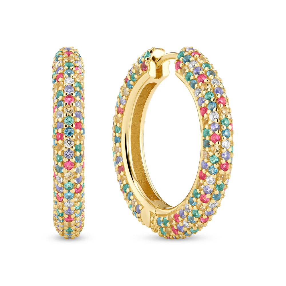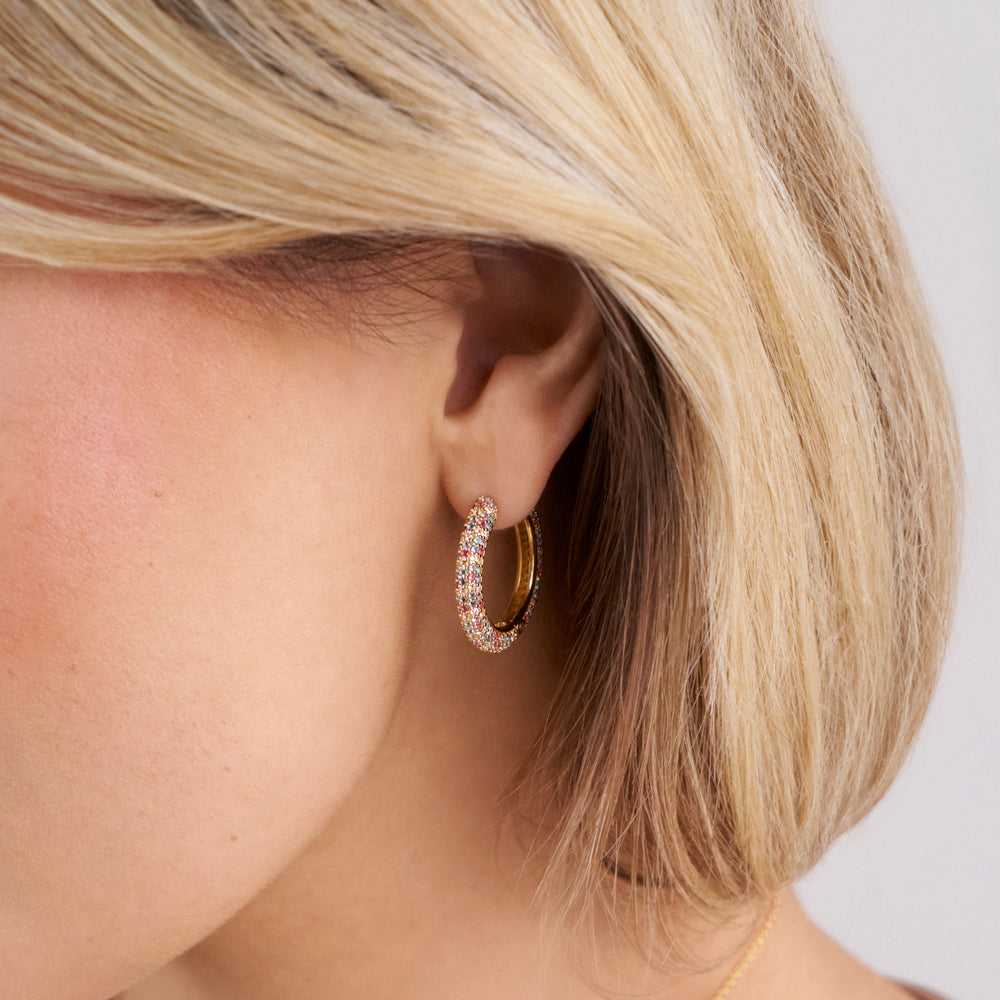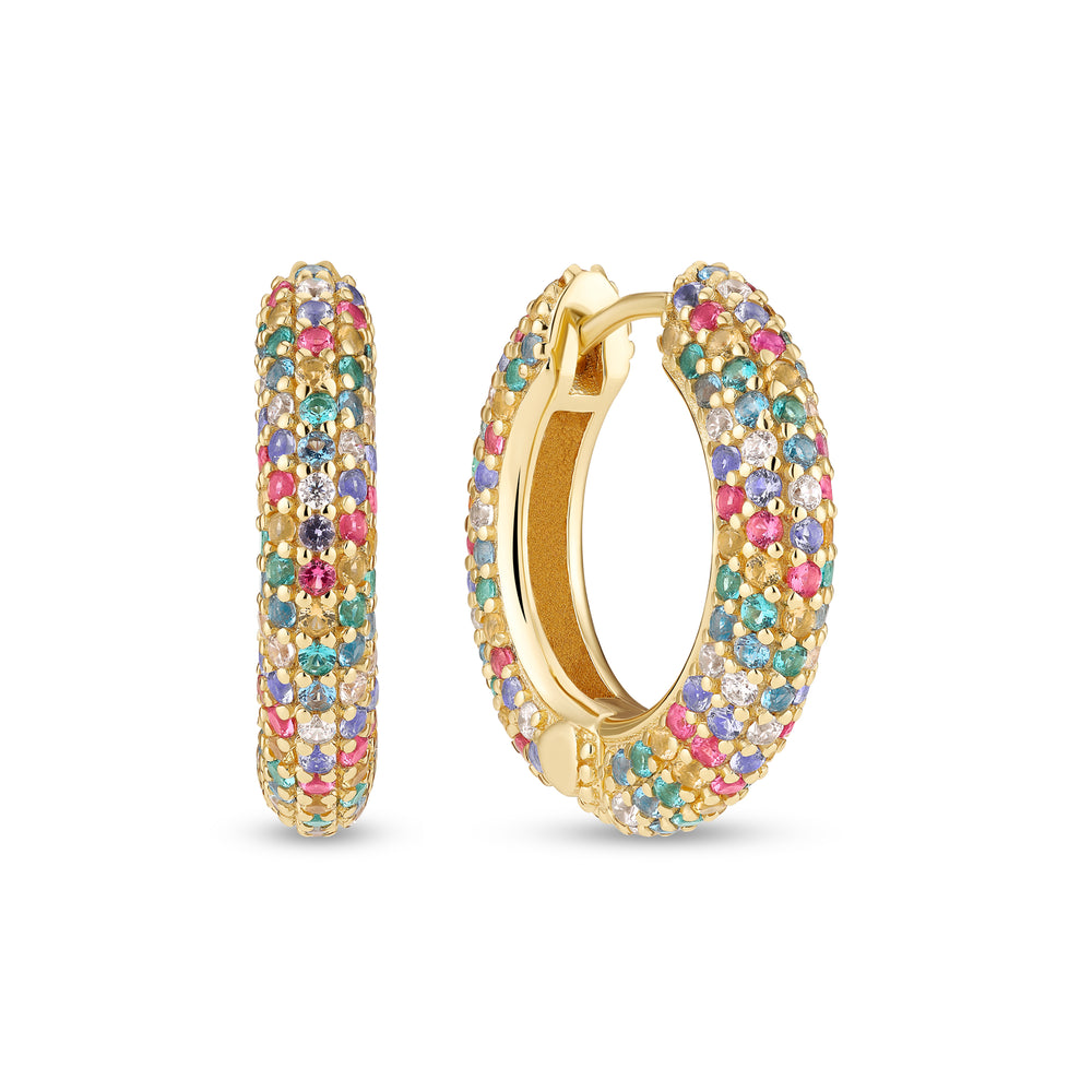 Øreringe af 18 karat forgyldt 925 sterling sølv, med poleret overflade og håndsat med facetterede multifarvede zirkoner