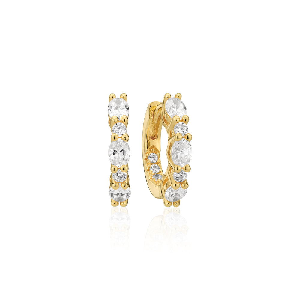 Øreringe lavet af 18 karat forgyldt 925 sterlingsølv, med poleret overflade og indfattet med facet-slebne hvide zirkoner.