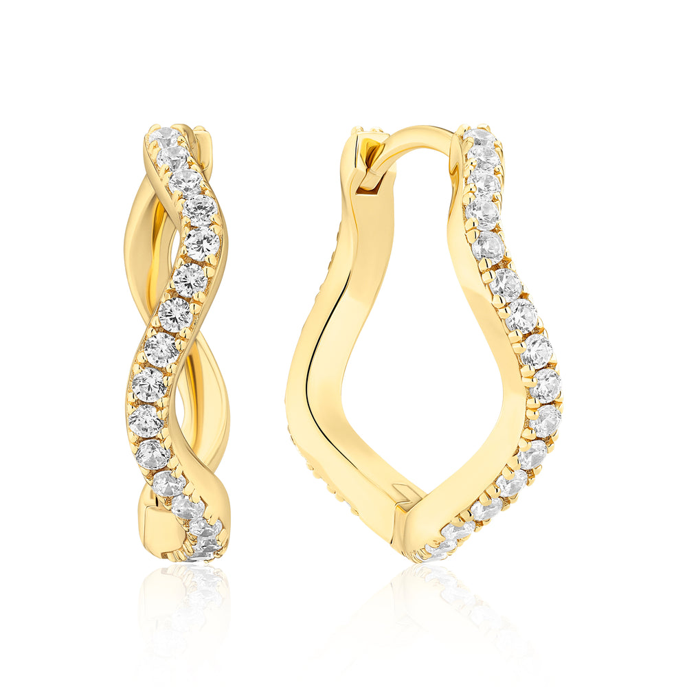 Øreringe af 18 karat forgyldt 925 sterling sølv, poleret overflade og håndsat med facetterede hvide zirkoner