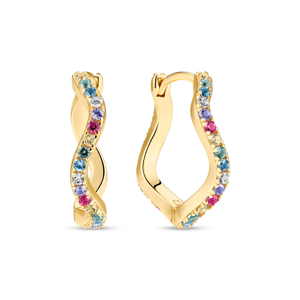 Øreringe af 18 karat forgyldt 925 sterling sølv, poleret overflade og håndsat med facetterede multifarvede zirkoner