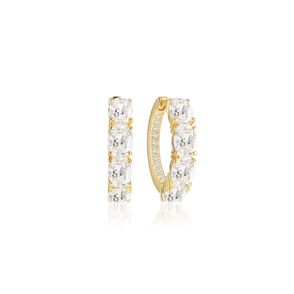 Øreringe udført i 18 karat forgyldt 925 sterlingsølv, blankpoleret overflade og håndsatte facetslebne hvide zirkoner.
