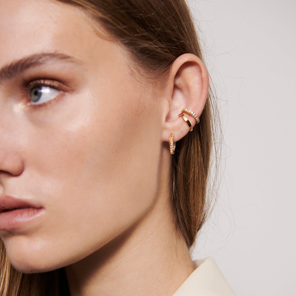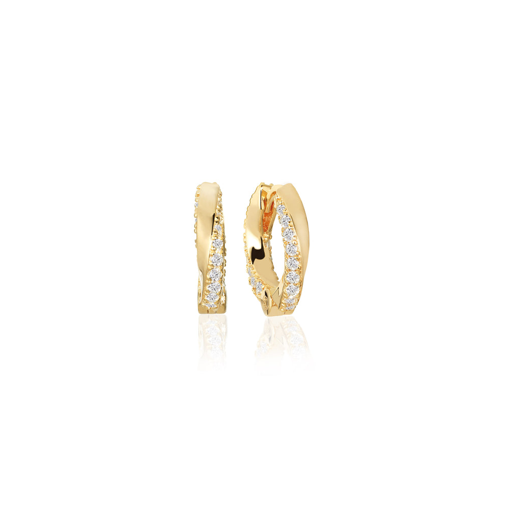 Øreringe i sterlingsølv 925 forgyldt med 18 karat guld med blankpoleret overflade og facetslebne hvide zirkoner.