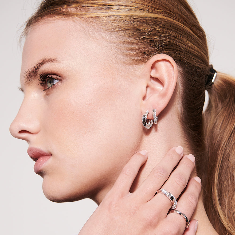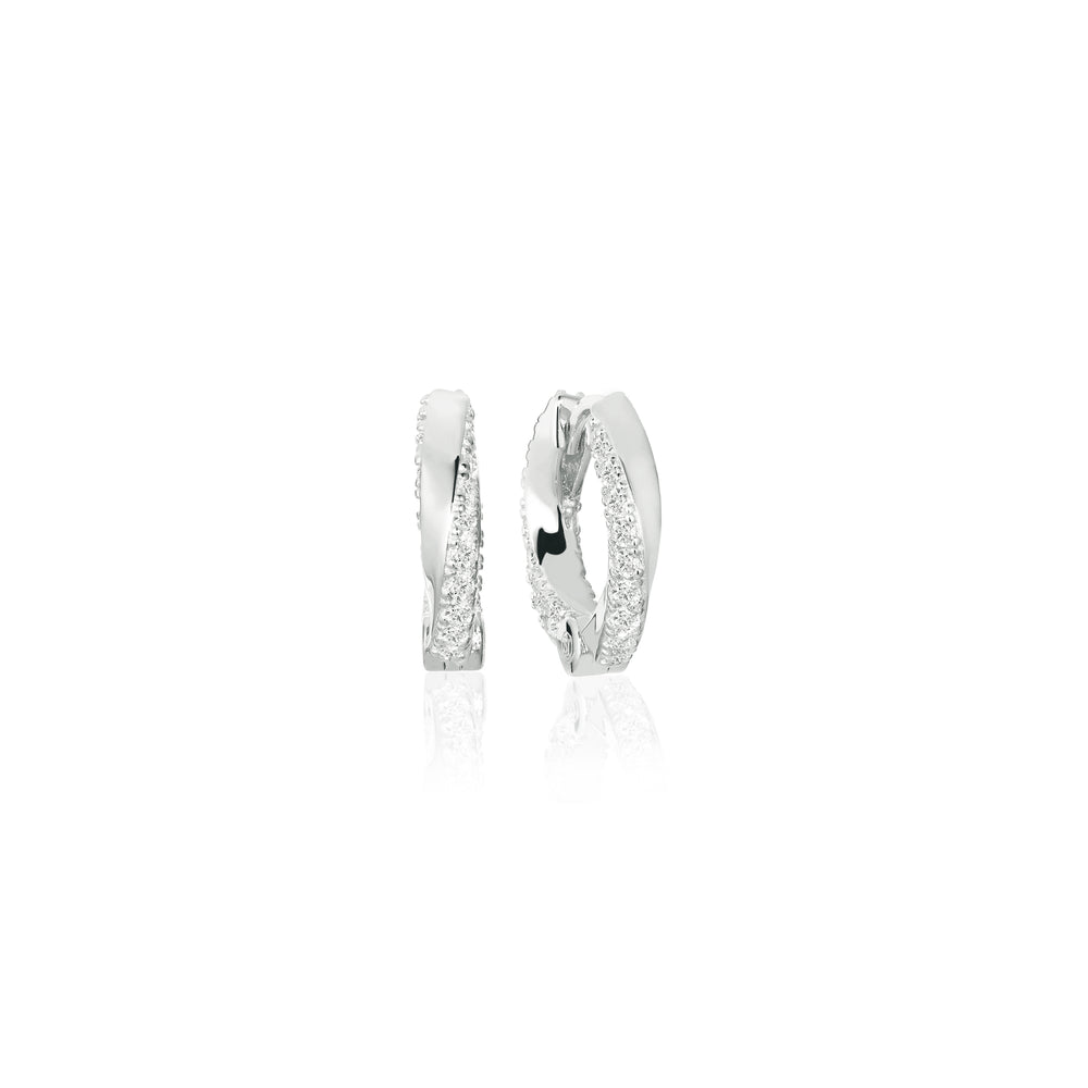 Øreringe i rhodineret sterlingsølv 925 med blankpoleret overflade og facetslebne hvide zirkoner.