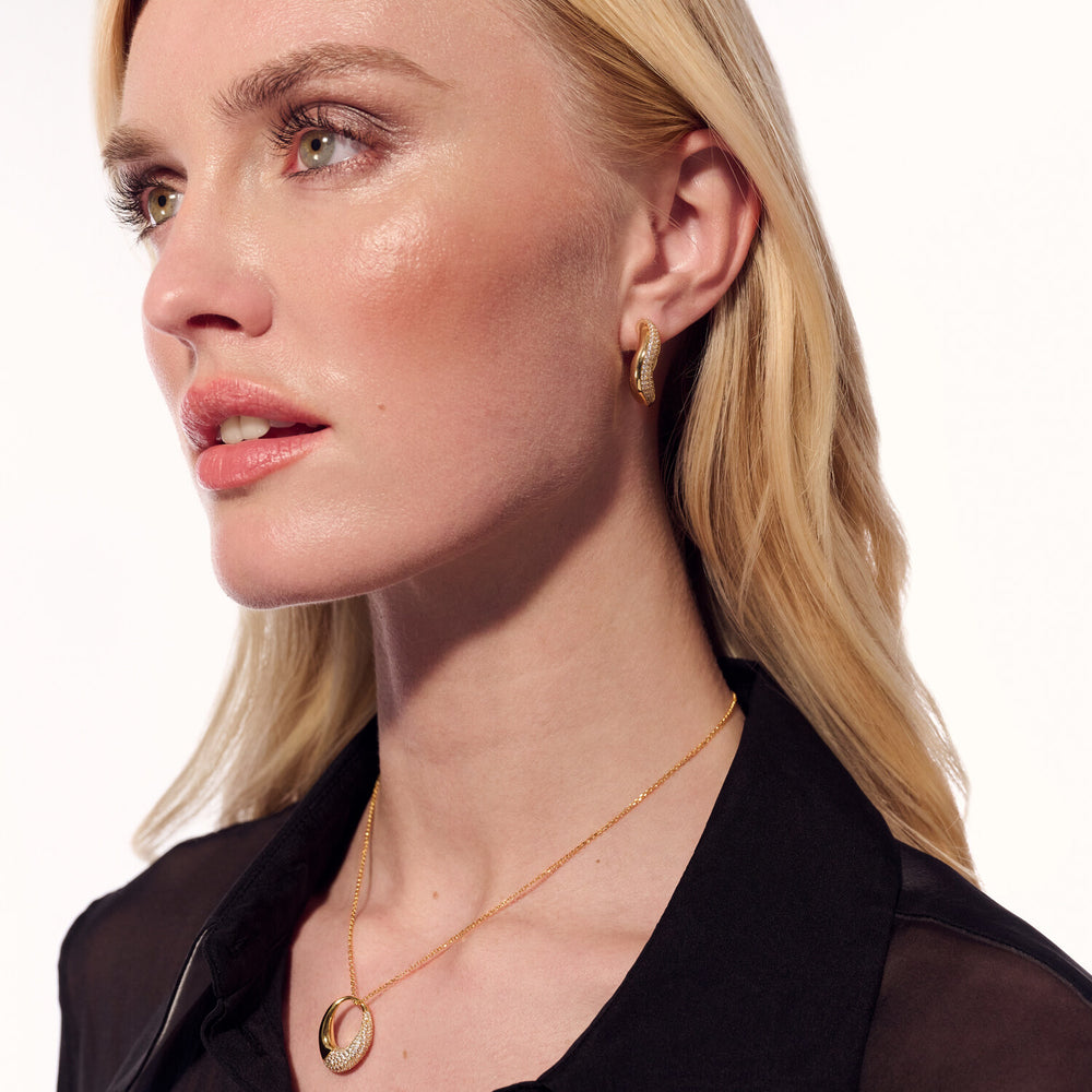 Øreringe i 18 karat forgyldt Sterlingsølv med poleret overflade og håndsatte facetslebne hvide zirkoner
