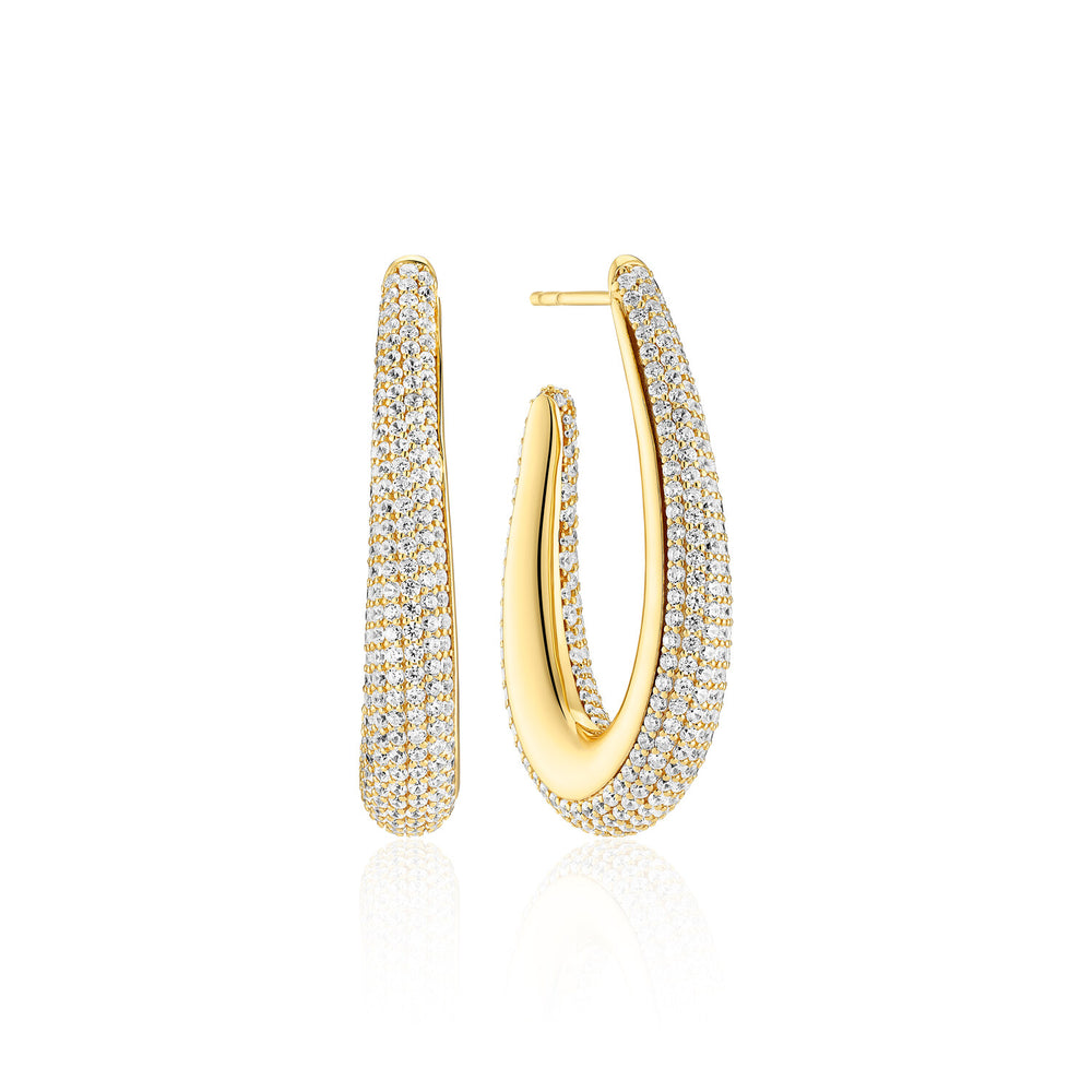 Øreringe i 18 karat forgyldt 925 Sterling Sølv. med poleret overflade og håndsatte facetslebne hvide zirkoner