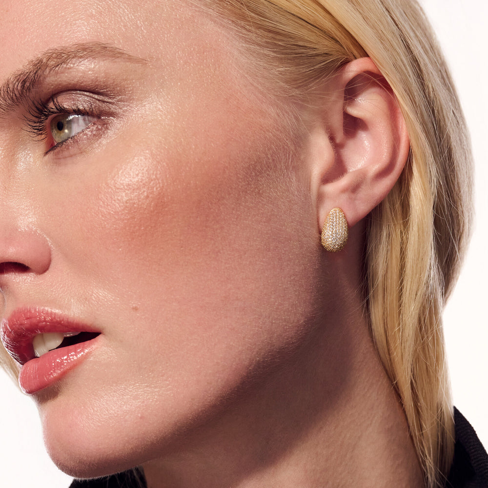 Øreringe i 18 karat forgyldt 925 Sterlingsølv, med poleret overflade og håndsatte facetslebne hvide zirkoner