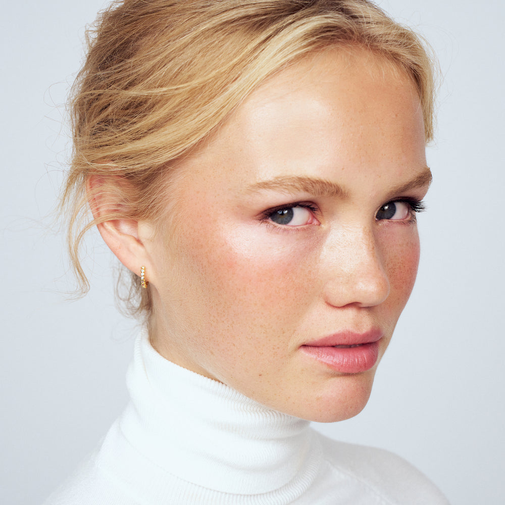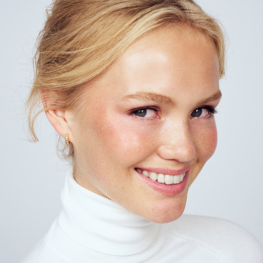 Øreringe lavet af 18k forgyldt 925 Sterling Sølv, en poleret overflade og håndsat med facetterede hvide zirkoner.
