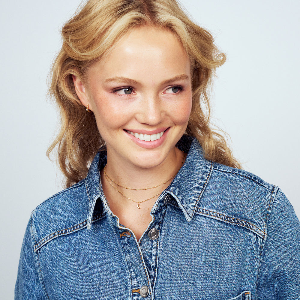 Alle vores smykke er lavet af 925 sterlingsølv, belagt med rhodium eller 18 karat guld for at opnå en elegant finish.