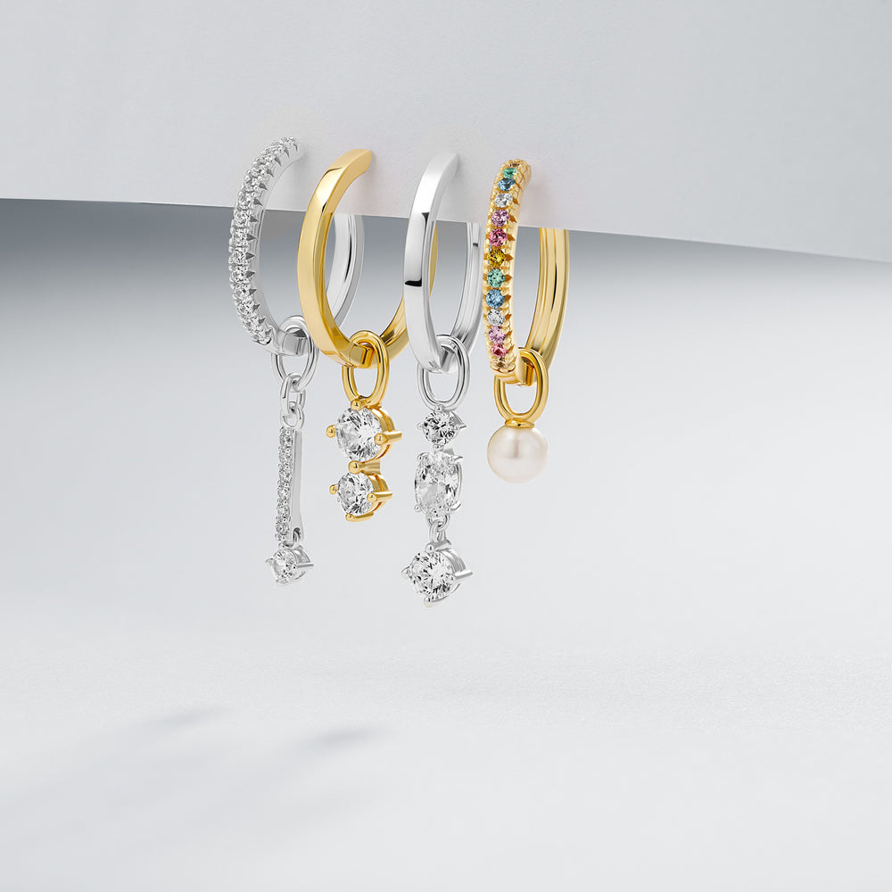 Alle vores smykke er lavet af 925 sterlingsølv, belagt med rhodium eller 18 karat guld for at opnå en elegant finish.