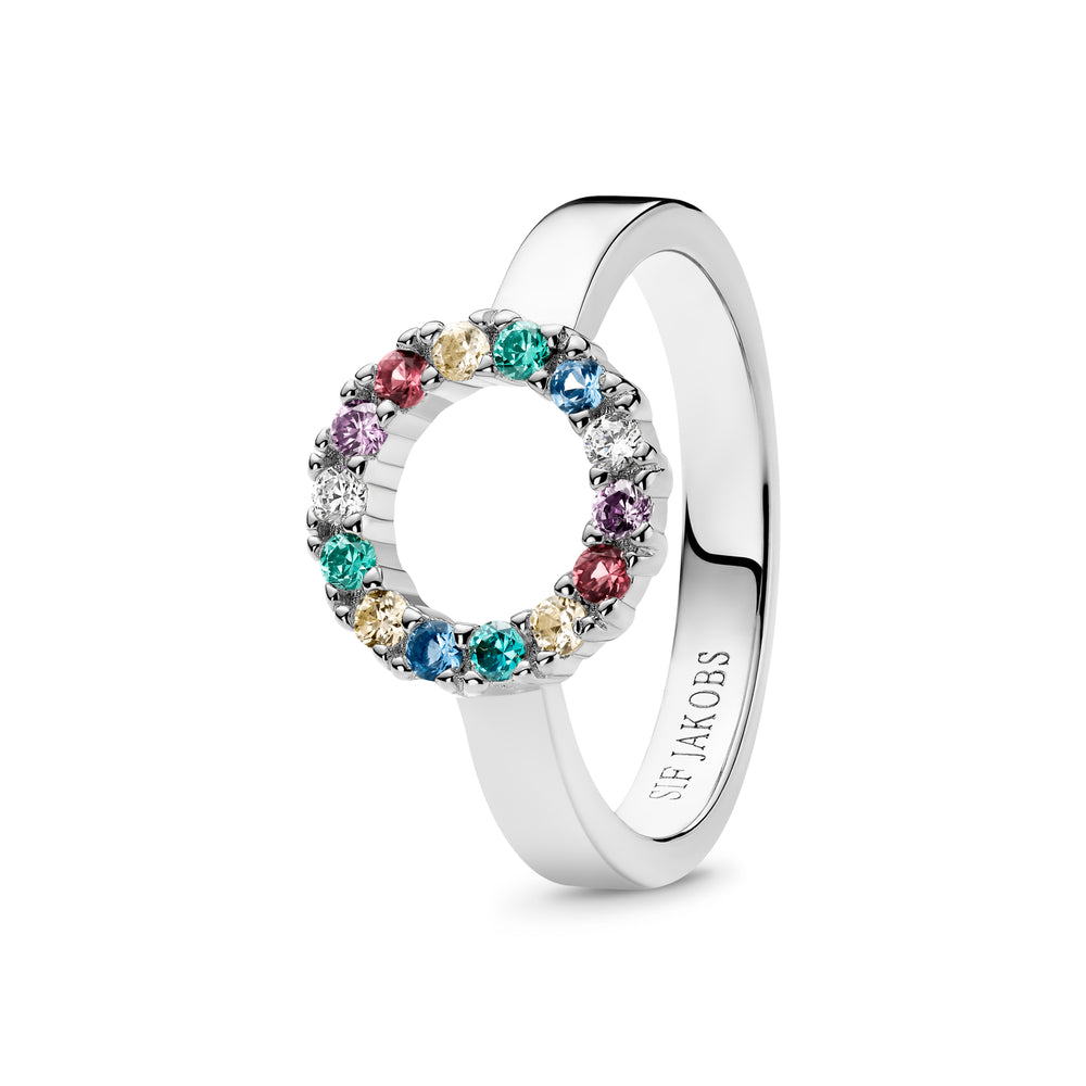 Klassisk favorittilføjelser til SJJ SS17 kollektionen! Ring i rhodineret sterlingsølv 925 med blankpoleret overflade og facetslebne multifarvede zirkoner.