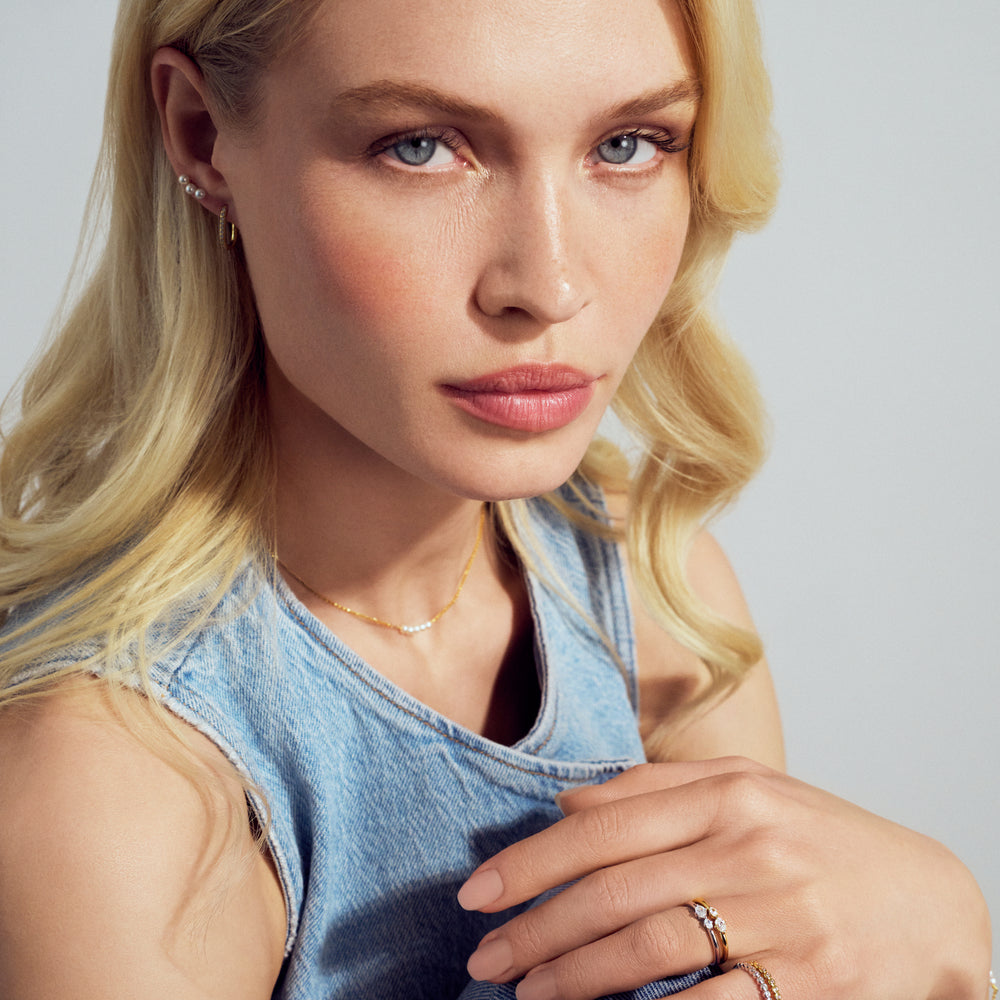 Alle vores smykke er lavet af 925 sterlingsølv, belagt med rhodium eller 18 karat guld for at opnå en elegant finish.