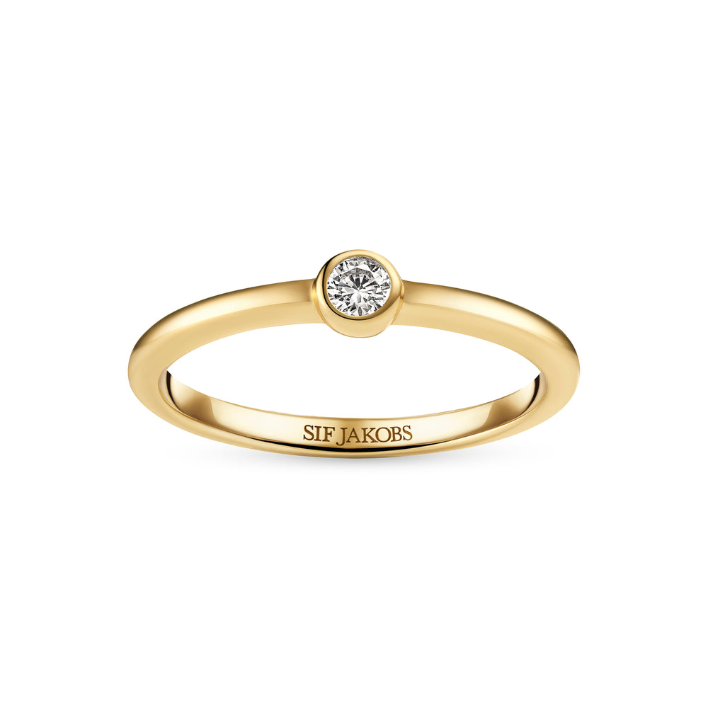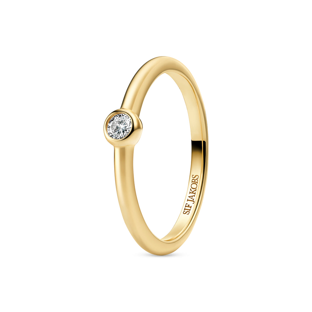 Ring af 18 karat forgyldt 925 sterlingsølv, med en poleret overflade og en håndsat facetslebet hvid zirkon.