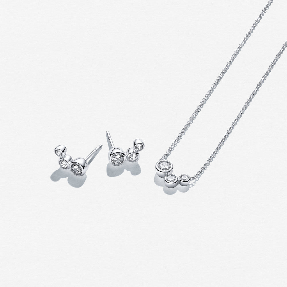 Sæt af rhodineret 925 Sterling Sølv, med en poleret overflade og håndsatte facetslebne hvide zirkonia.