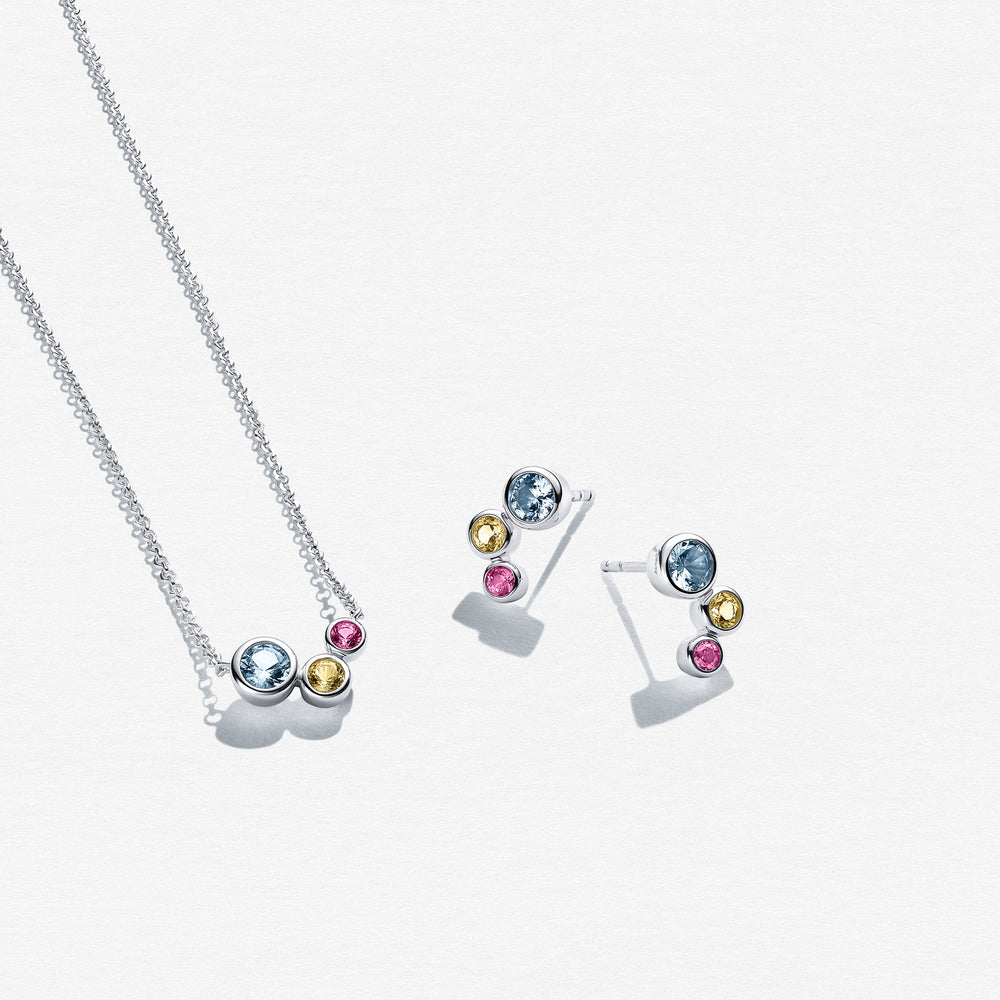 Sæt af rhodineret 925 Sterling Sølv, med en poleret overflade og håndsatte facetslebne flerfarvede zirkonia.